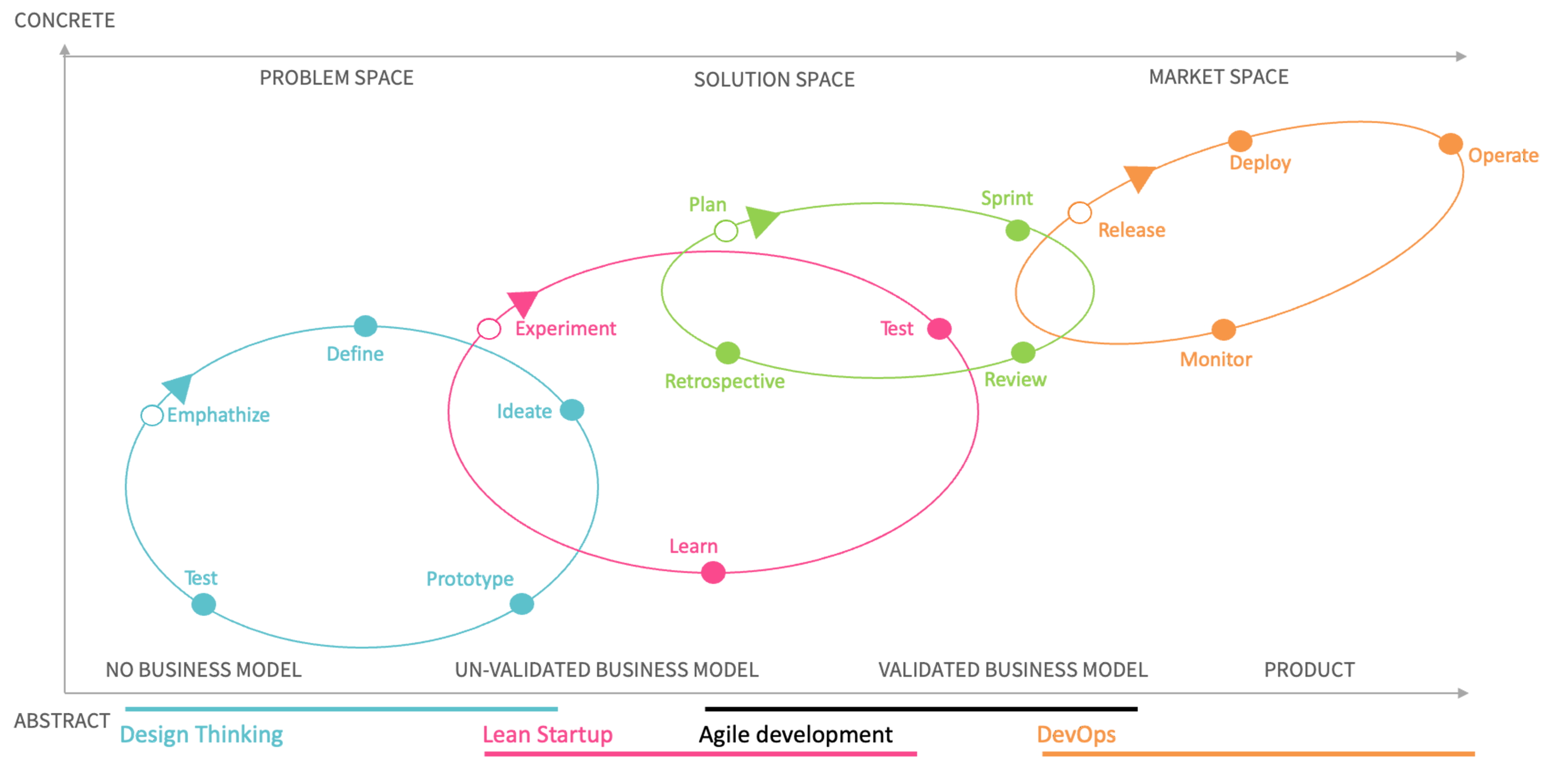 Fonte: rielaborazione Geert Claes, “When, which … Design Thinking, Lean, Design Print, Agile?” - 2017